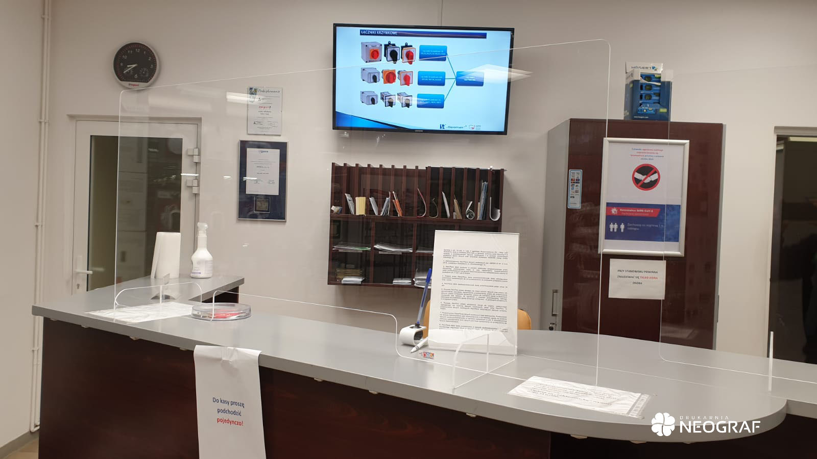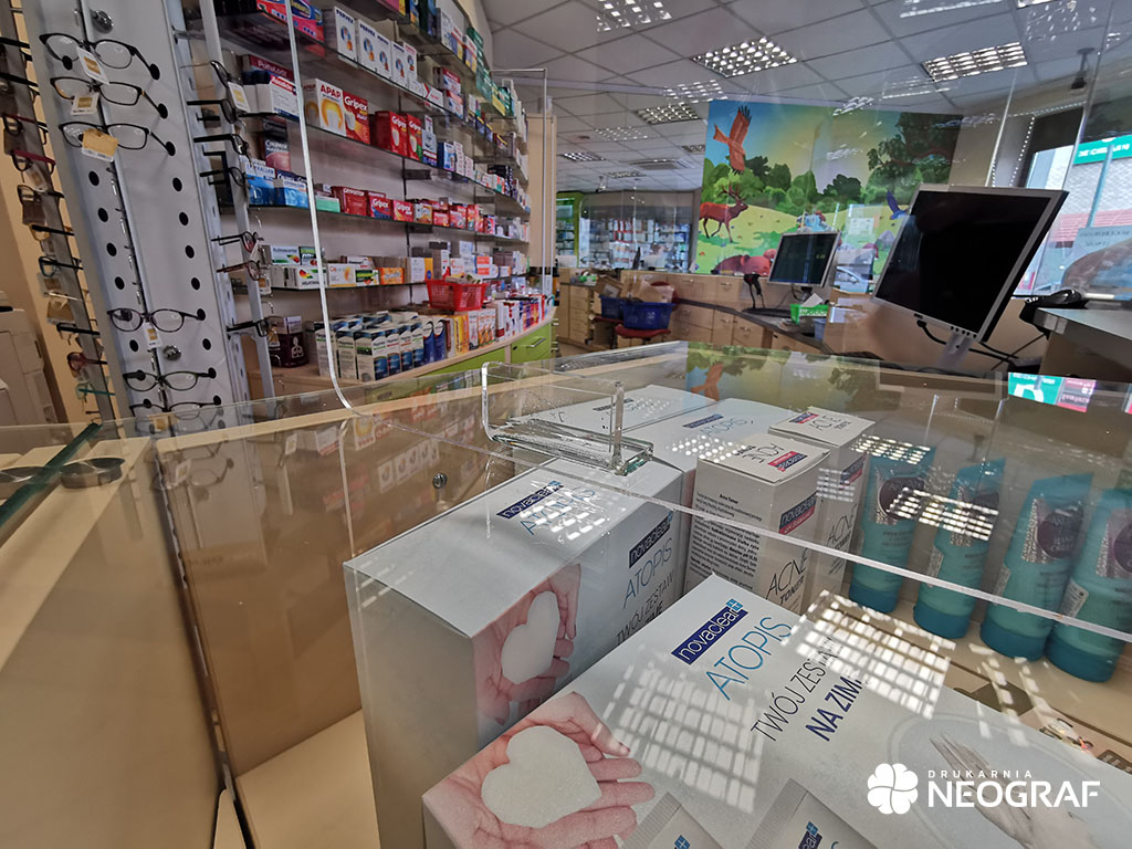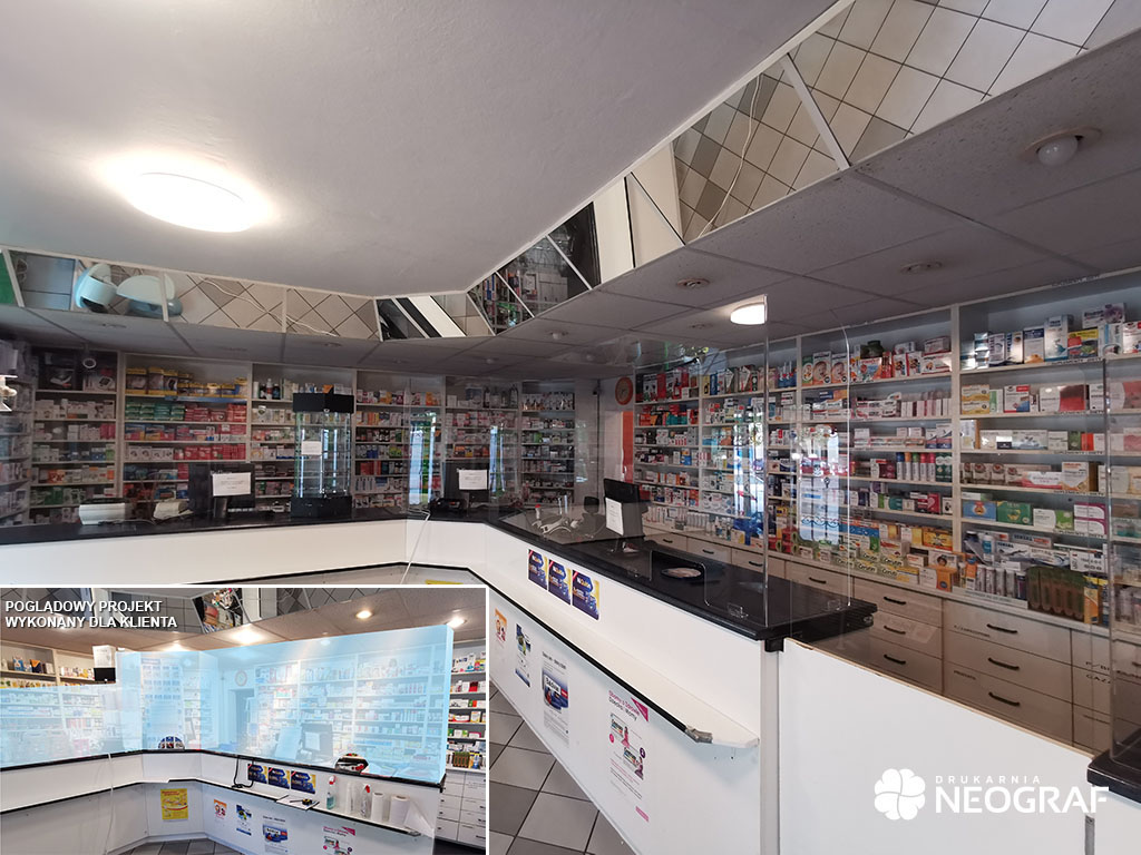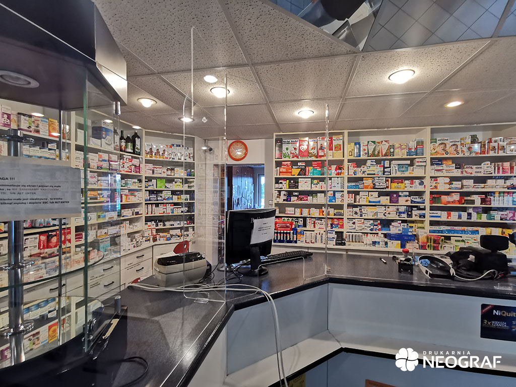 Osłony z plexy na ladę są zalecane przez Główny Inspektorat Epidemiologiczny oraz przez Naczelną Izbę Aptekarską jako jeden z koniecznych zabezpieczeń przy obsłudze klienta.