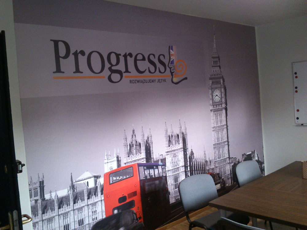 Szkola Języków Obcych Progres. Fototapeta papierowa w jednej z sal zajęciowych. Szkola Języków Obcych Progres. Fototapeta papierowa w jednej z sal zajęciowych.