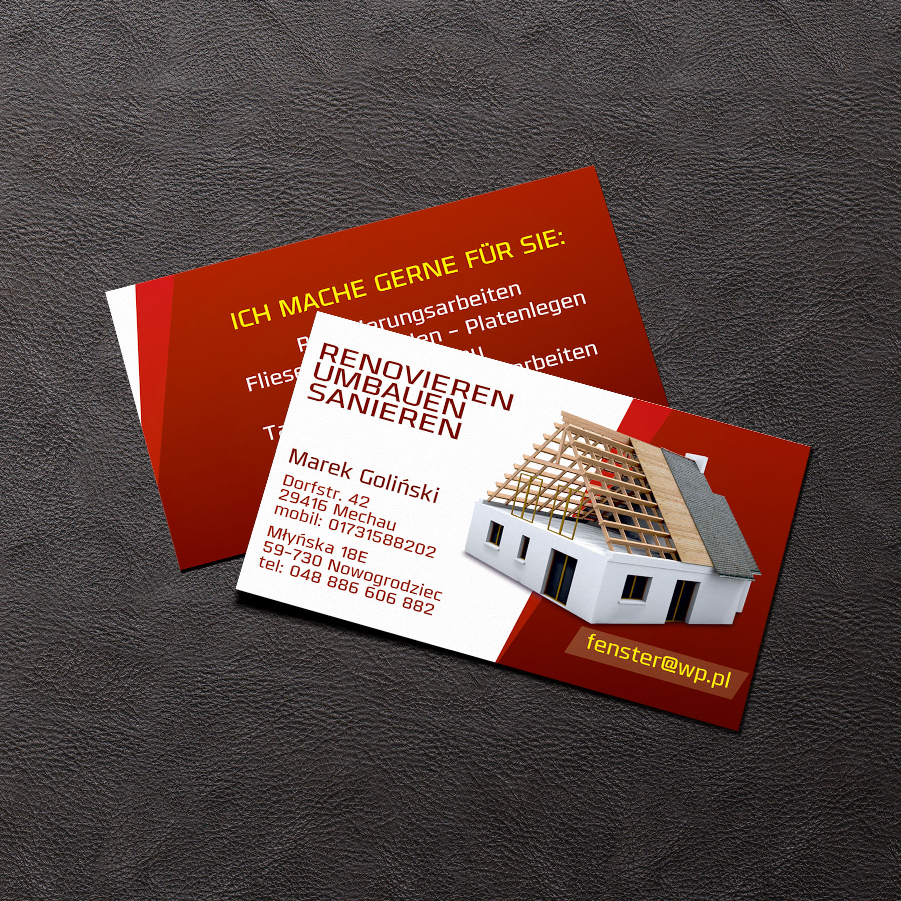 Salon Kosmetyczny Milagro - ulotka dwustronna A6 Salon Kosmetyczny Milagro - wizytówka jednostronna 9x5 Gabinet Rehabilitacji i Masażu - ulotka jednostronna A6 Gabinet Stomatologiczny Adent - ulotka dwustronna A6 Gabinet Stomatologiczny Adent - wizytówka dwustronna 9x5 Pisarz Ryszard Adam Grychawka - wizytuwka dwustronna 9x5 - stylizowana na stary papier Dom i Ogród - wizytówka jednostronna 9x5 Mechanika Samochodowa Andrzej Stec - wizytówka dwustronna Paintball Ławszowa - ulotka wdustronna A6 Sala Zabaw Oli - ulotka dwustronna A5 Usługi Budowlane - wizytówka dwustronna 9x5 Usługi Ogólnobudowlane - wizytówka dwustronna 9x5 Tom-Car Auto Detaling - wizytówka dwustronna 9x5 Usługi Remontowe - wizytówka dwustronna 9x5 Usługi Tartaczne i Budowlane - wizytówka dwustronna 9x5 OVB - ulotka jednostronna A6 PCK Bieg Po Chleb - plakat A3 Usługi Krawieckie Gabi - wizytówka 9x5 Skup Złomu Metallmix - wizytówka 9x5 Serwis Klimatyzacji BK-Klima - wizytówka jednostronna 9x5 Naprawa Chłodnic Lelek - wizytówka 9x5